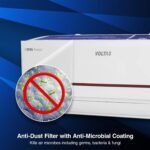 Split AC with inverter compressor: Variable speed compressor which adjusts power depending on heat load. Convertible / adjustable with 4 cooling modes through remote control to operate in different tonnages for different cooling needs (20% to 120% capacity)