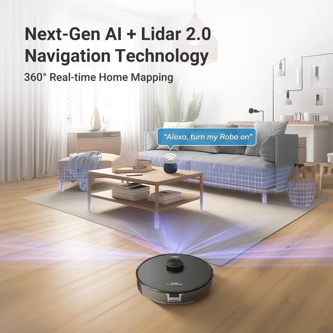 NextGen AI + LiDar 2.0 Navigation Technology: Cutting-edge navigation capabilities with advanced AI and LiDar 2.0 technology, ensure precise and efficient cleaning throughout your home