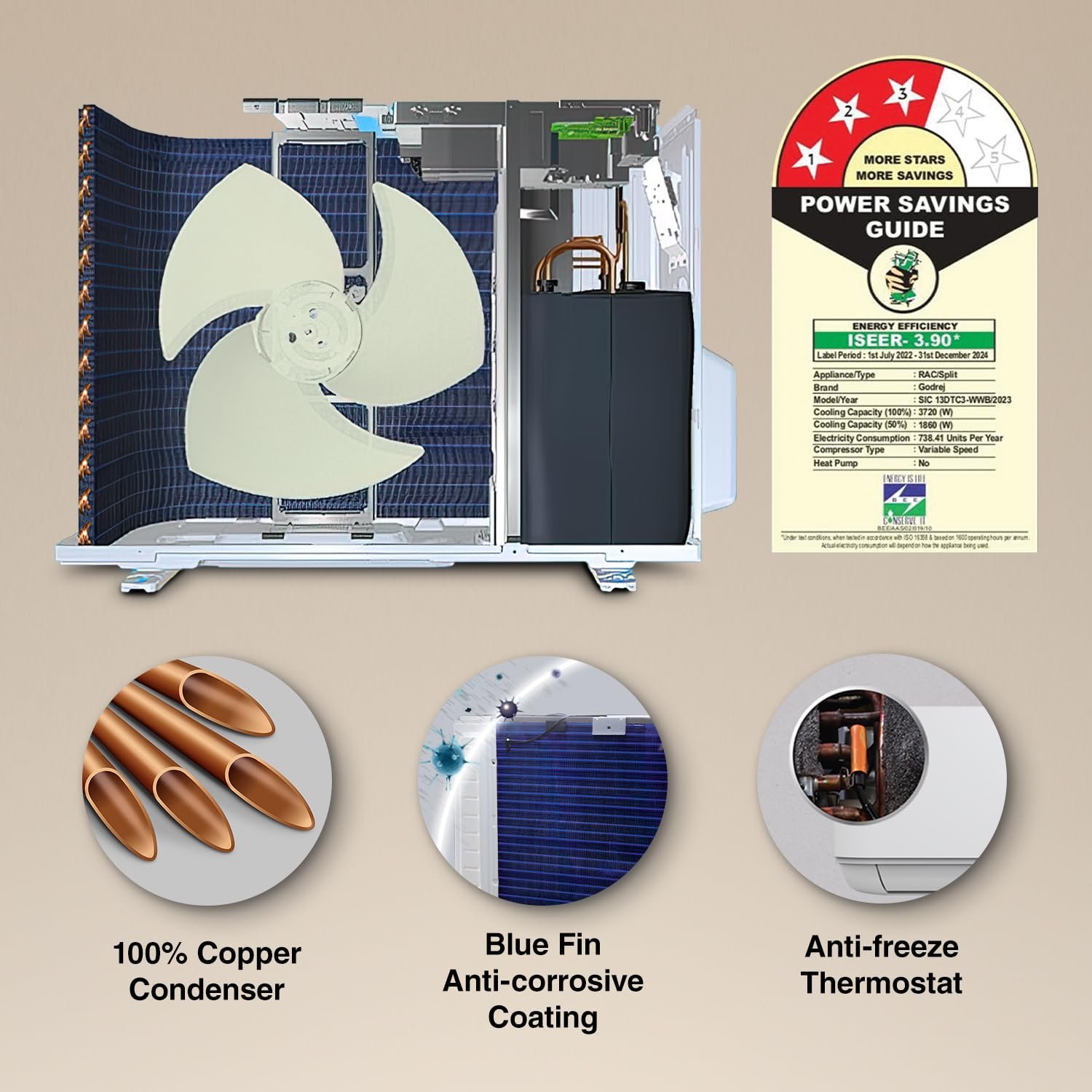 - Condenser Coil: 100% copper evaporator and condenser with Blue Fin Anti-Corrosion coating that ensures durability and heavy duty performance for uninterrupted powerful cooling