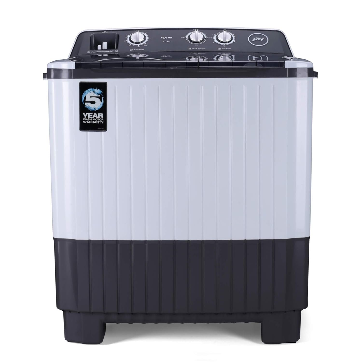 Semi-automatic top-loading washing machine: Economical, Low water and energy consumption, involves manual effort; Has both washing and drying functions