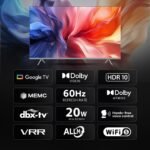 - Smart TV Features: Google TV | Watchlist | Google Assistance | Chromecast | Hands Free Voice Control | 2GB RAM + 32GB ROM | ALLM | VRR | WiFi 5 |Supported Apps: Prime Video, Netflix, Jio Hotstar, Sony Liv, Zee5, Apple TV and more Energy Rating: 2 Star | Annual Energy Consumption: 140.16kWh/Year