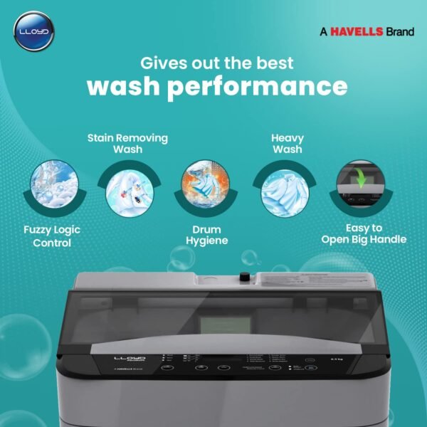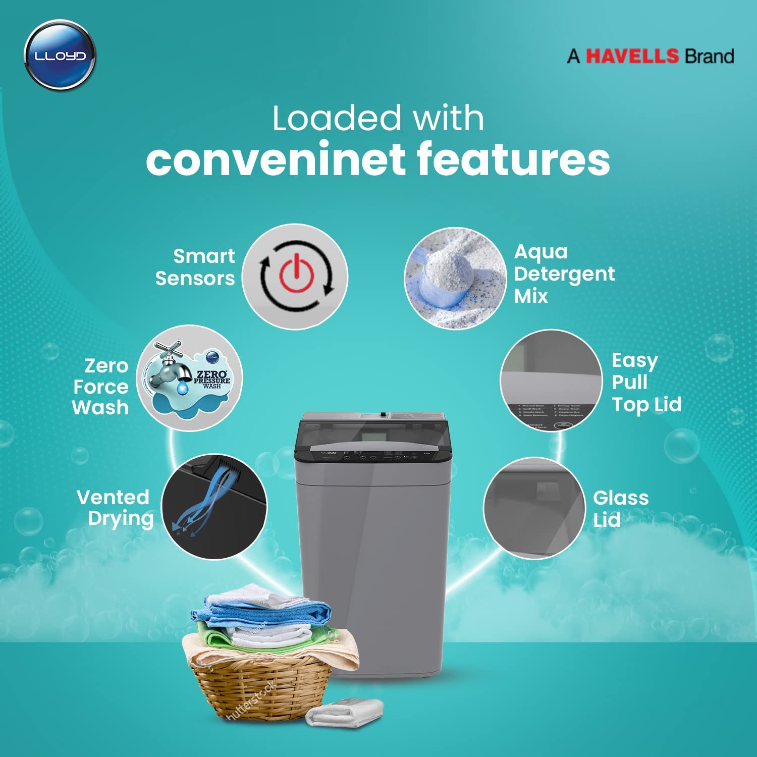 5 Star energy Rating – with 5 Star energy Rating, Lloyd gives you best in class water and energy efficiency, Aqua Shower rinse, Aqua detegent mix – fine foam that dissolves and wahesh away toughest stains, Rust free metal body, toughend glass lids