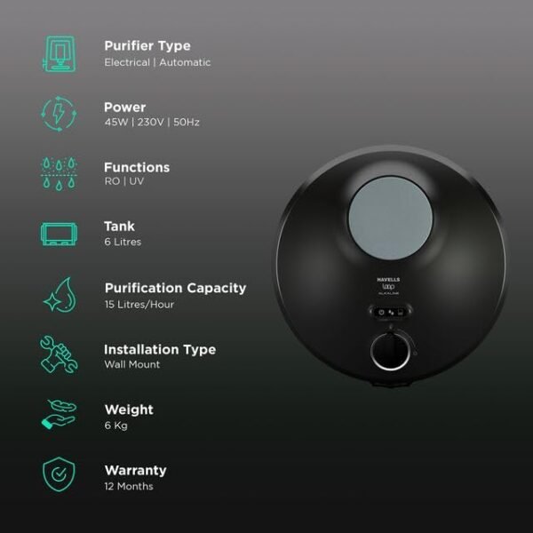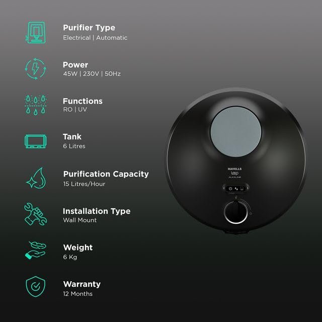 HAVELLS LOOP 6L RO + UV + Alkaline Water Purifier with Hygienic Flow Control (Silver Charged Membrane Technology, Black Color)HAVELLS LOOP 6L RO + UV + Alkaline Water Purifier with Hygienic Flow Control (Silver Charged Membrane Technology, Black Color)
