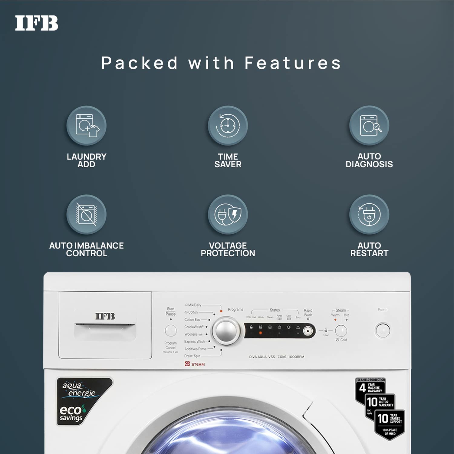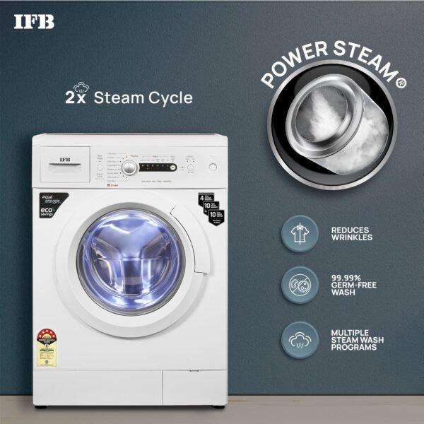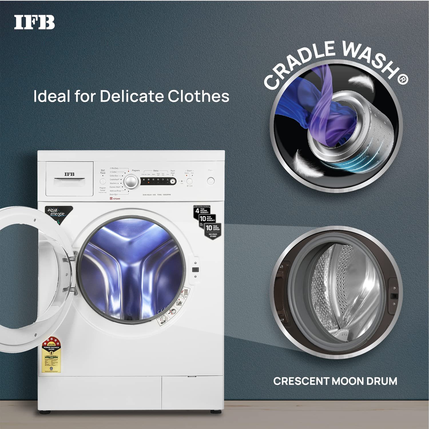 Aqua Energie, Auto Imbalance Control, Child Lock, Cradle Wash for Delicates, Extra Rinse, Foam Detection, High-Low Voltage Protection, Inbuilt Heater, Power Dual Steam, Self Diagnosis, Stainless Steel Crescent Moon Drum, Time Delay, Time Saver