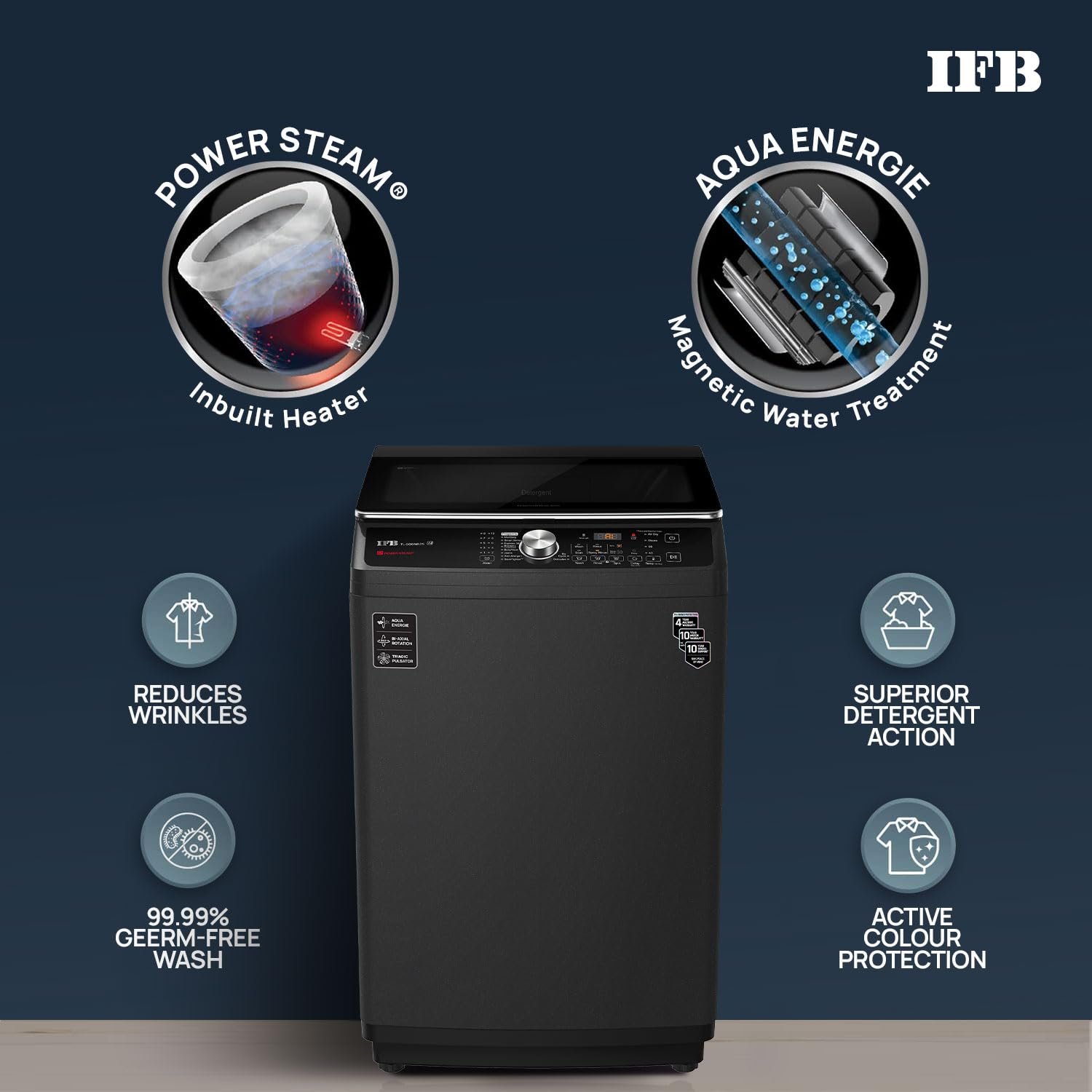 Capacity 9 Kilograms Additional Features ActivMix (premixes water and detergent), Aqua Energie (treats hard water), Auto-Load Sensing, Power Steam®, Powered by AI Access Location Top Load Finish Types Painted Black Cycle Options Bulky, Delicates, Express 30’, StainFighter™, Synthetic Controls Type Knob Operation Mode Fully Automatic Voltage 220 Volts Installation Type Freestanding -