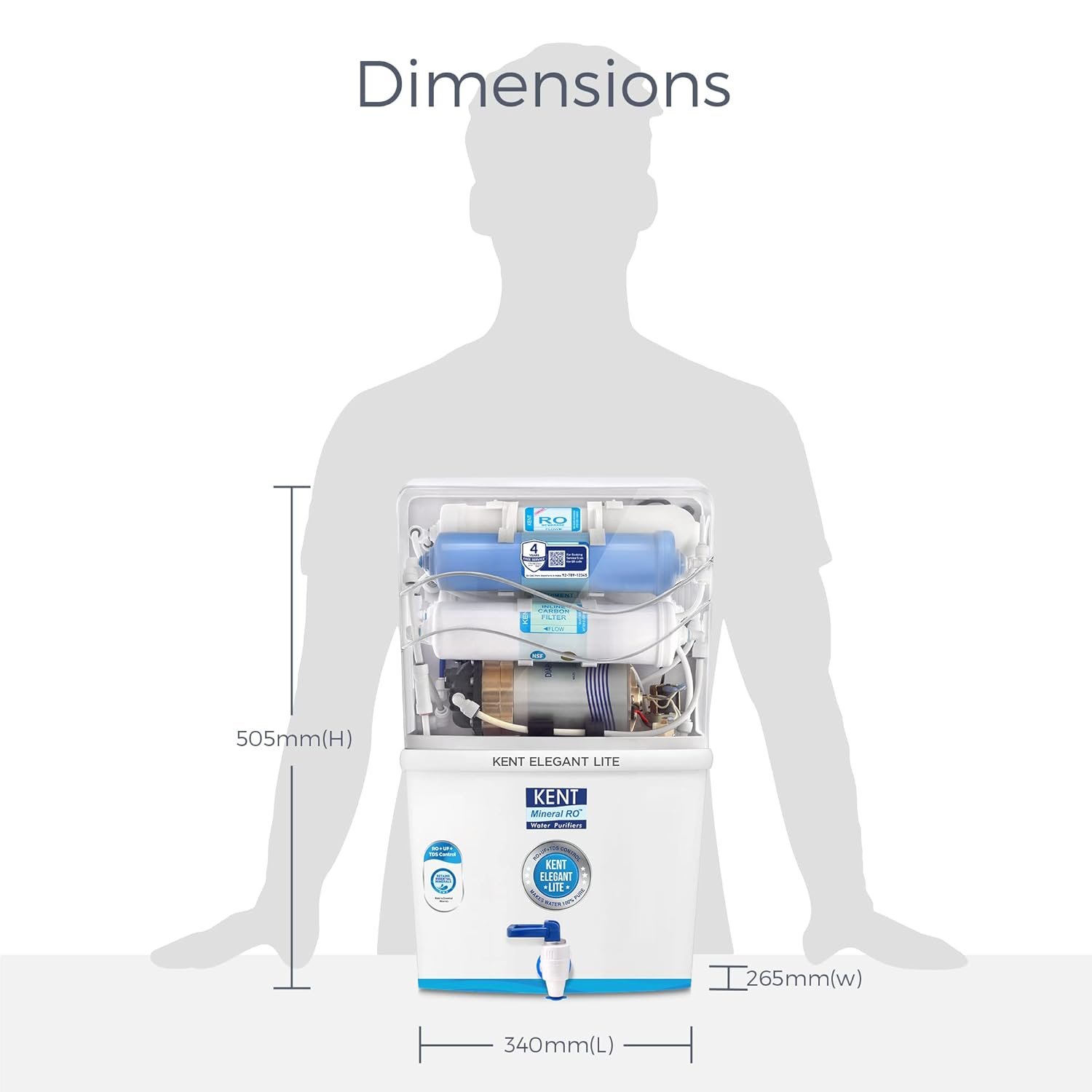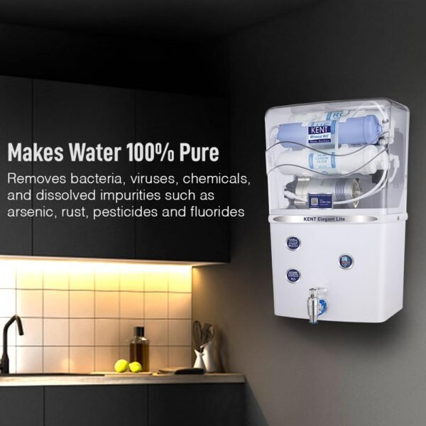 KENT Elegant Lite RO Water Purifier | 4 Years Free Service | ISI Marked | Multiple Purification Process | RO + UF + TDS Control | 8L Tank | 15 LPH Flow | White
