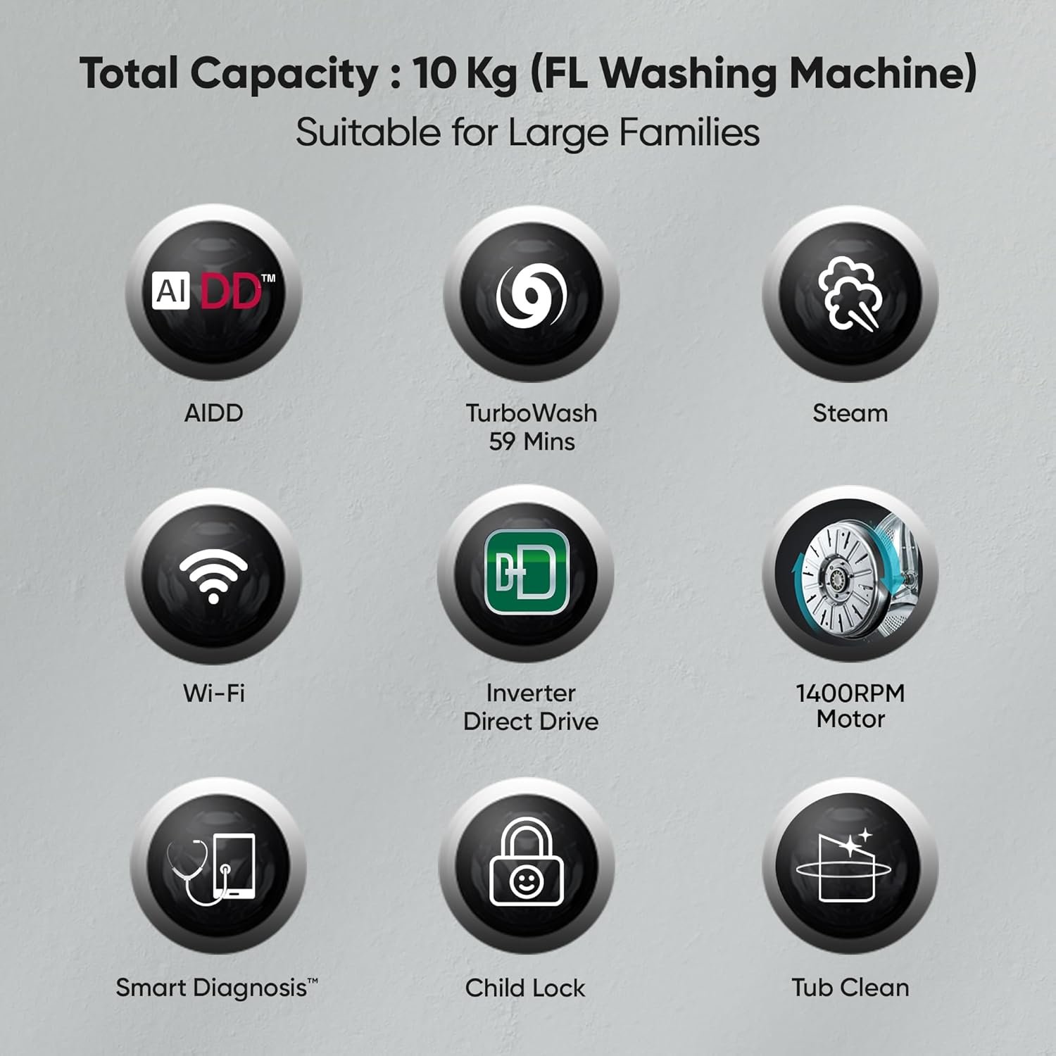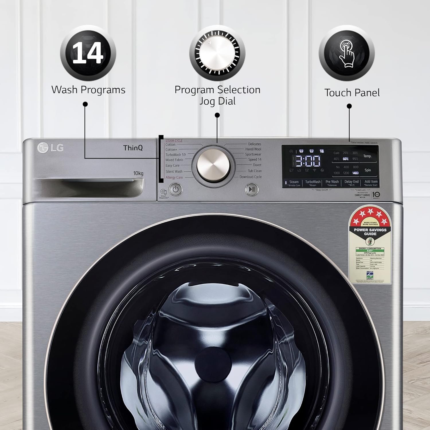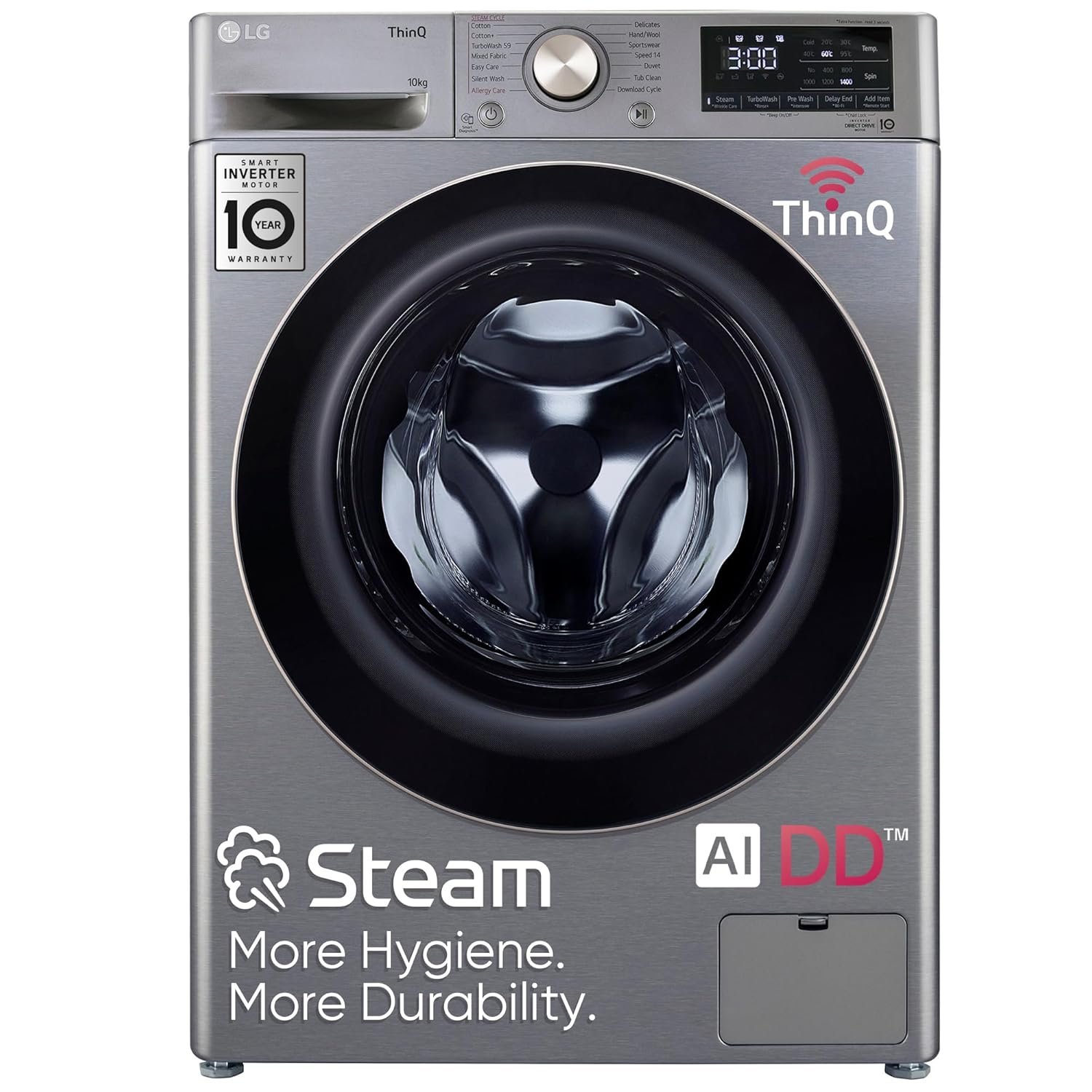 LG 10 Kg 5 Star Ai Direct Drive Wi-Fi Inverter Fully Front Load Automatic Front-Loading Washing Machine (FHP1410Z3M ), Turbowash & Steam For Hygiene Wash, Platinum)