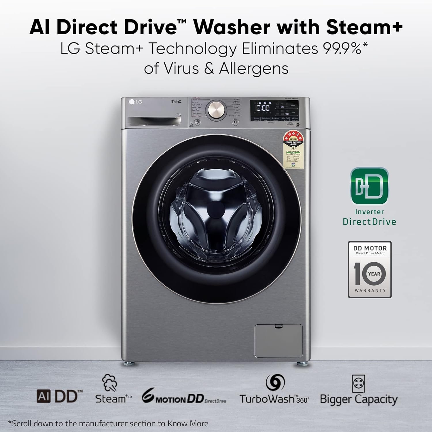 LG 11 Kg 5 Star Inverter Wi-Fi Fully-Automatic Front Loading Washing Machine with Inbuilt heater (FHP1411Z9P, Platinum, AI DD Technology & Steam+ for Hygiene)