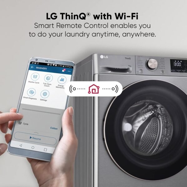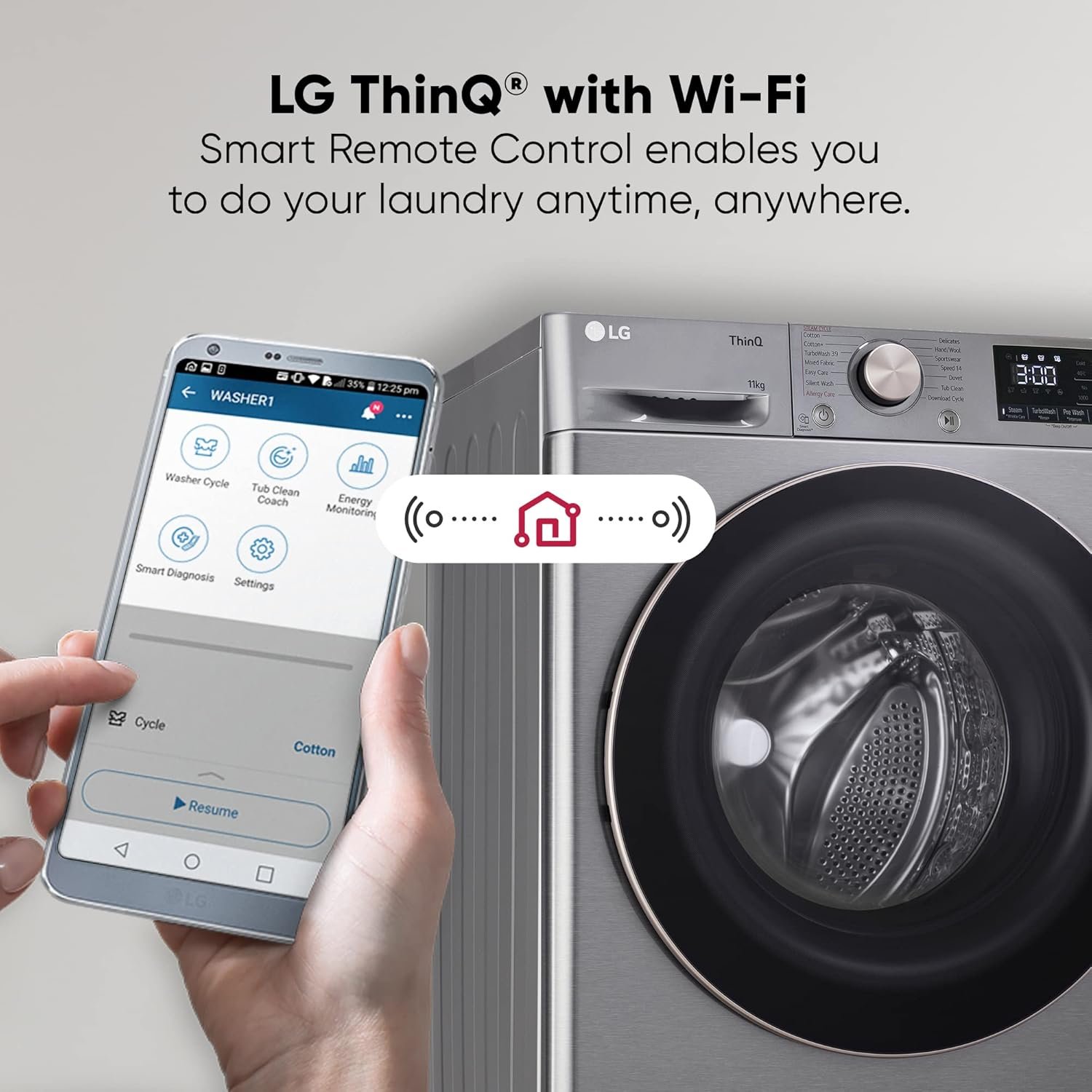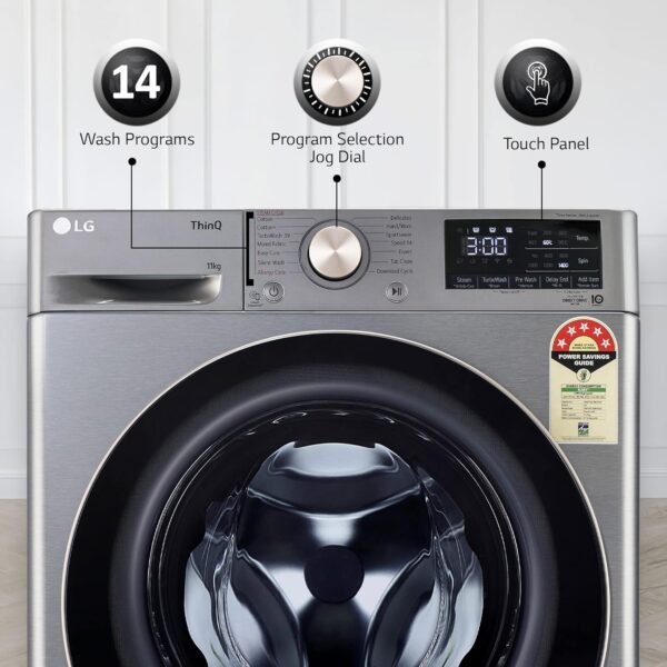 Wash Programs: 14 No. of Programs – Cotton, Cotton+, TurboWash 59, Mixed Fabric, Easy Care, Allergy Care, Baby Steam Care, Delicates, Hand/Wool, Speed 14, Dry Only, Wash+Dry (5 Kg), Tub Clean & Download Cycle | Can be downloaded multiple wash programs using LG ThinQ App