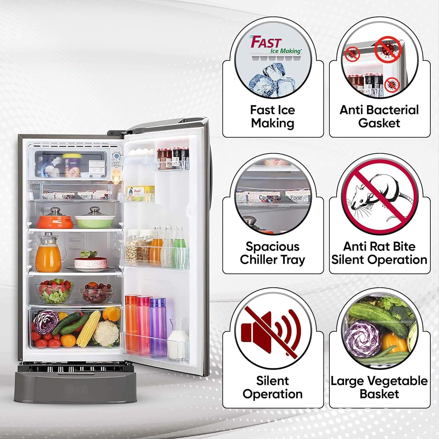 - Direct Cool Refrigerator: Experience efficient cooling and timeless design with LG Single Door Refrigerators ā built for freshness, convenience, and energy savings in every Indian home