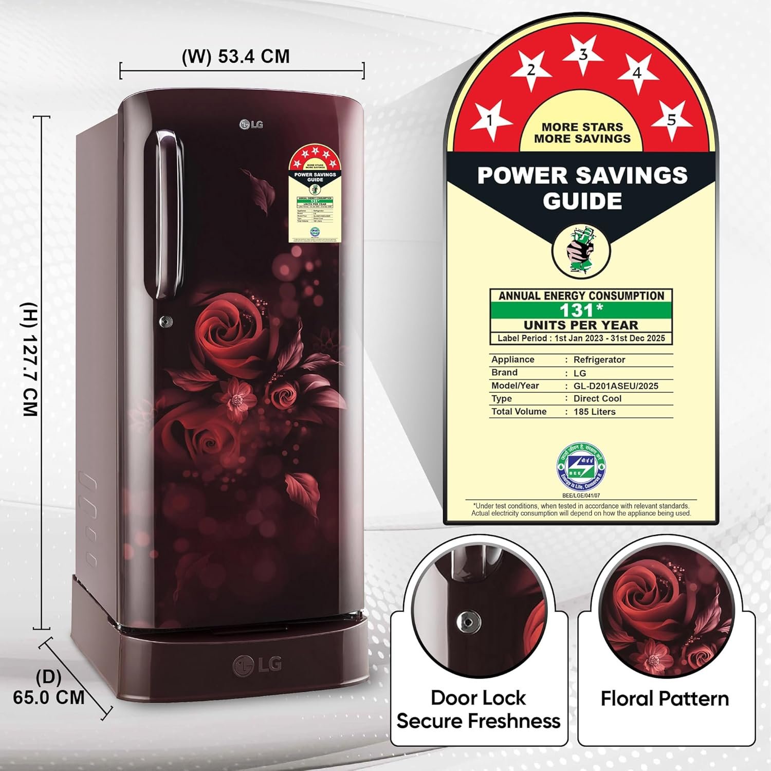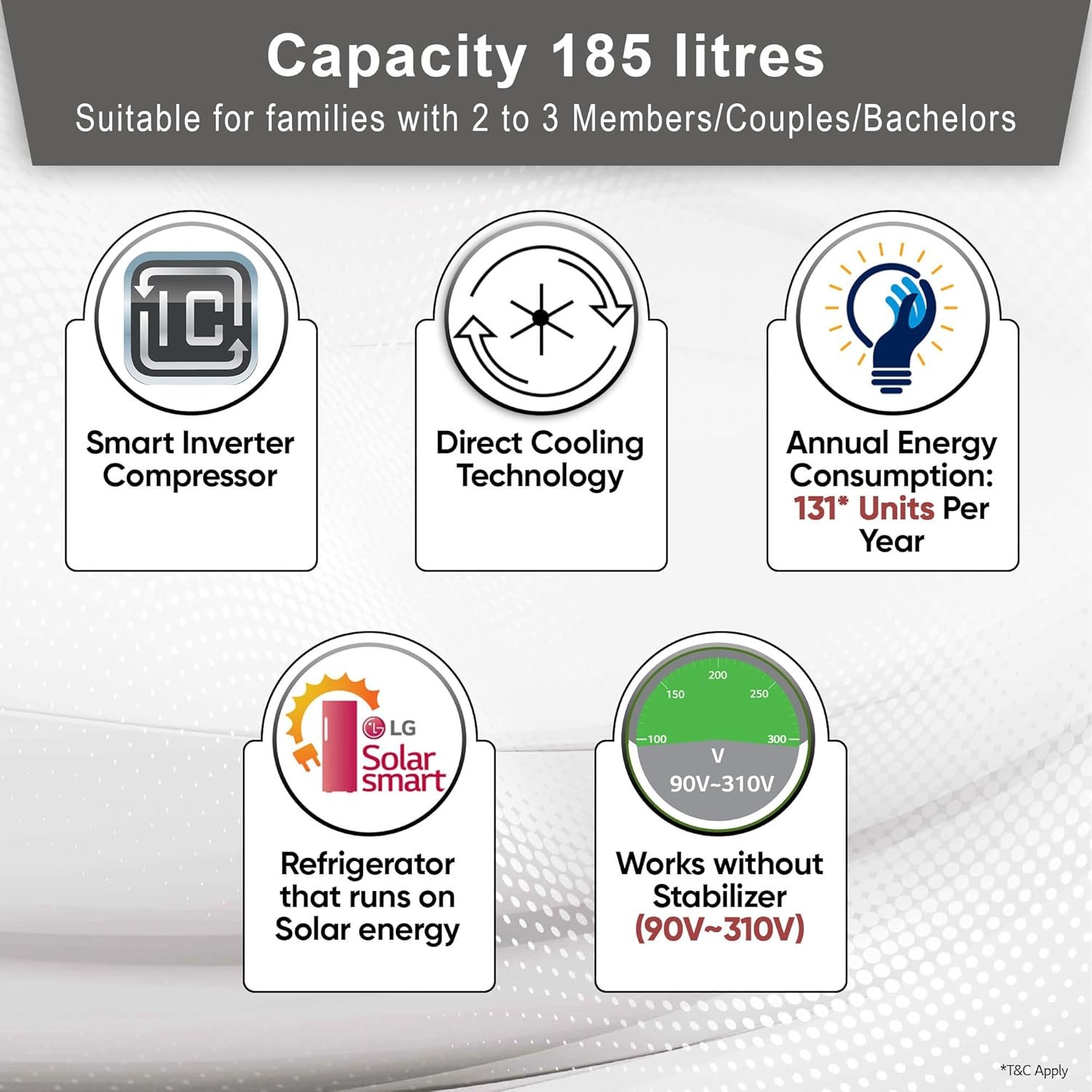 LG 185 L 5 Star Inverter Direct-Cool Single Door Refrigerator (GL-D201ASEU