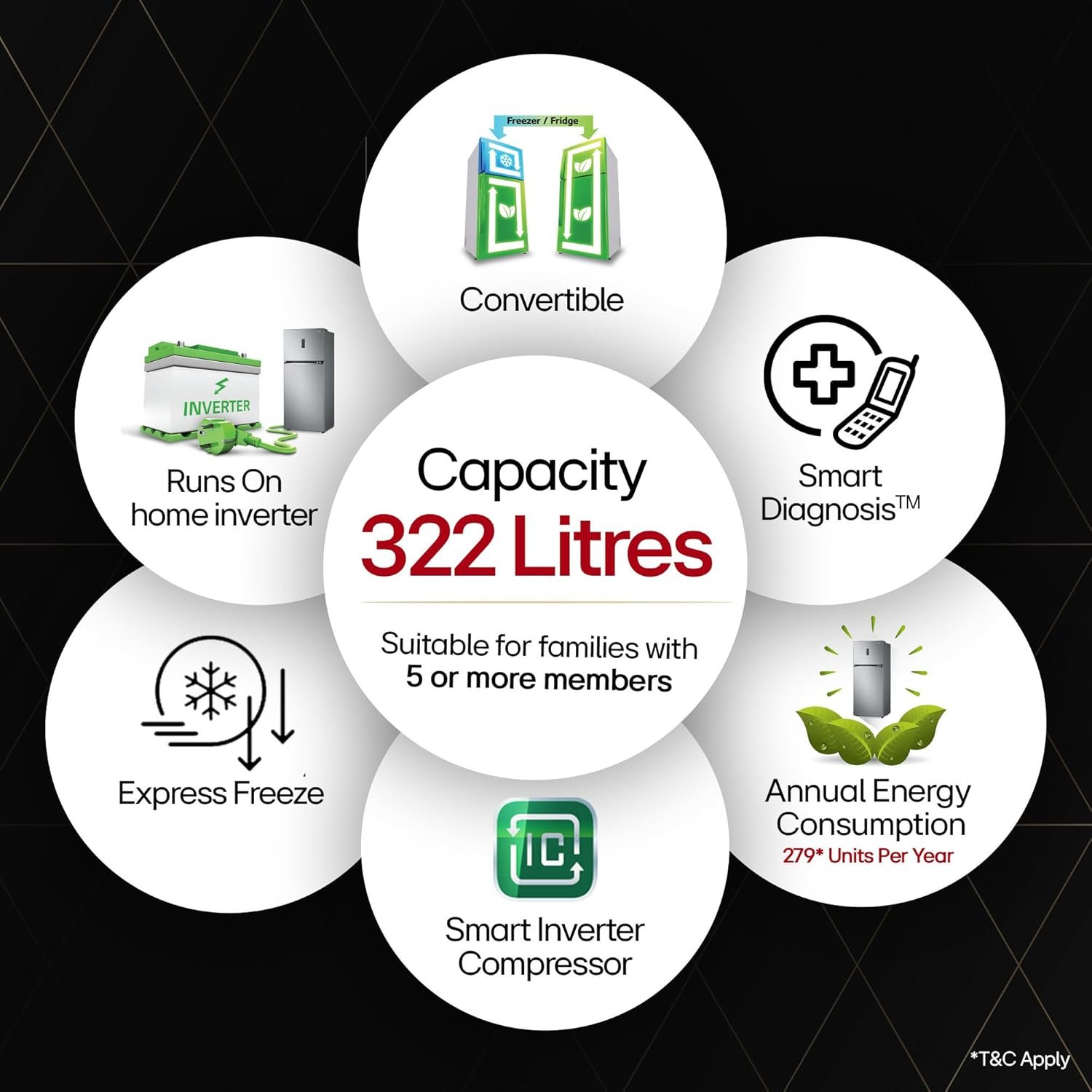 - Smart Inverter Compressor: Experience energy efficiency, precise temperature control and enhancing comfort