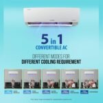 Capacity 1.5 Tons Cooling Power 4.8 Kilowatts Special Features 5 in 1 Convertible; Cools Even @ 52 ˚C, Golden Fin Evaporator; PM 2.5 Filter, Installation Check; Stabilizer Free Operation; Hidden LED Display, Low Gas Detection; Clean Filter Indication, Smart 4 Way Swing; Turbo Cool; 100% Copper; Anti Corrosion Coating Seasonal Energy Efficiency Ratio (SEER) 5.2 Voltage 230 Volts Noise Level 37 dB Filter Type PM 2.5 Filter Power Source Corded Electric Form Factor Mini-Split Air Flow Efficiency 520 Cubic Feet Per Minute Per Watt Control Method Remote Inverter Type Has Inverter Wattage 1185 Watts Controller Type Remote Control Efficiency 5 Star Installation Type Split System Compressor Type Rotary Is Product Cordless No Is Outdoor Unit Required Yes Air Conditioner Application Home Measurement