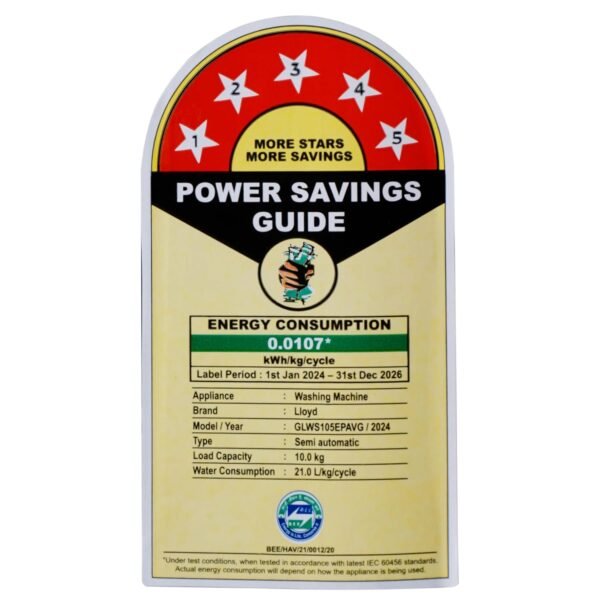 Aqua Balancer – To reduce vibration level, Lloyd has given aqua balancer with spin tub which balances the movement of spin tub in between balancer ring for better spinning & less vibration.