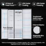 Configuration Full-Sized Side-by-Side Additional Features Automatic Defrost, Energy Efficient, Large Capacity Number of Doors 2 Defrost System Type Frost Free Voltage 230 Volts Shelf Type Toughened Glass Form Factor Convertible Ice Maker Dispensed Type Cubed Cooling Method Compressor Inverter Type Has Inverter Lock Type Electronic Number Of Shelves 8 Adjustable Temperature Control Yes Power Plug Type Type D Door Orientation Reversible Compressor Type Reciprocating Has Convertible Freezer Yes Is Product Cordless No Is Customisable? No Is Electric Yes Number Of Racks 8 Number of Sections 2 Door Shelf Count 10