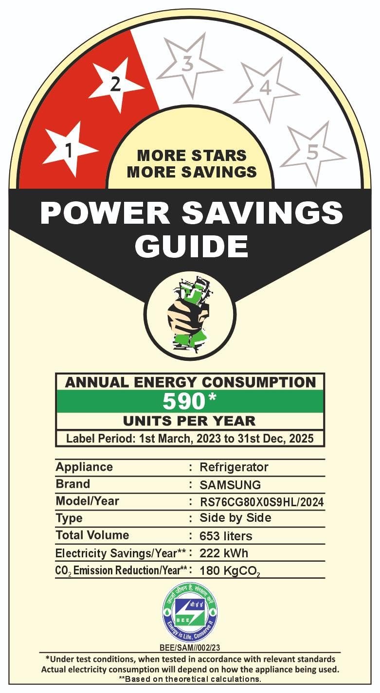 - Energy Rating : 2 star energy efficiency | annual energy consumption: 590 units per year