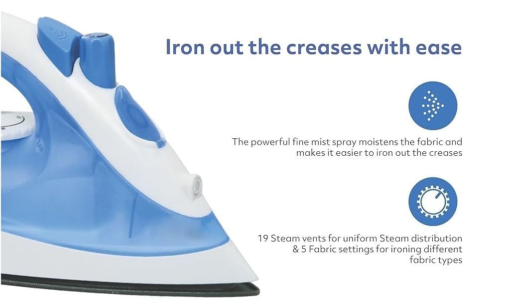 Non-stick PTFE coated soleplate for smooth ironing, Dry/Steam/Spray ironing