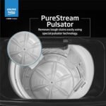 Drum / Pulsator type & Body material: Stainless-steel drum & Plastic body providing durability, rust resistance, and a gentle surface for clothes during washing
